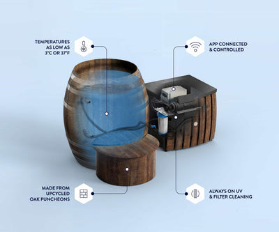 Aged over decades maturing Scotland’s beloved whisky - and now up-cycled and reimagined to take you on a journey into cold water immersion. Expert coopers restore every oak barrel in the Speyside Valley before being handed to us for finishing. These barrels are steeped in their own history which is why everyone is stripped back, refurbished and deep cleaned before being resined and oiled. This ensures it’s perfectly watertight and has locked in the original wood colour and uniqueness. No oak barrel is the same; they each bear their own subtle colouring and markings.